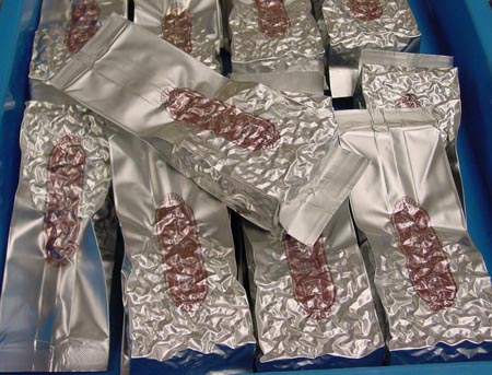 我公司生產的電腦型全自動真空包裝機專為包裝含水量大的產品而設計,采用日本控制線路,吸取國外同行業的先進技術經驗,其電器方面采用微電腦控制器全程控制,它具有防水、防潮、故障率低、使用壽命長等優點,這些優點使該設備便于清洗,就算用水直接沖洗也不會發生任何電器故障,架體采用國際標準食品用304不銹鋼板,強度高,不易破損,它獨特的傾斜臺面設計,可以保證產品內的水份不流失,從而使產品的含水真空包裝更易操作。